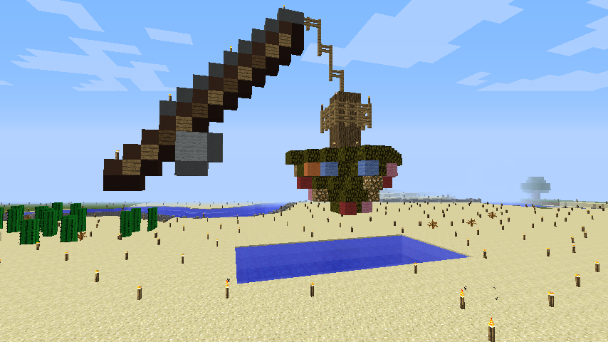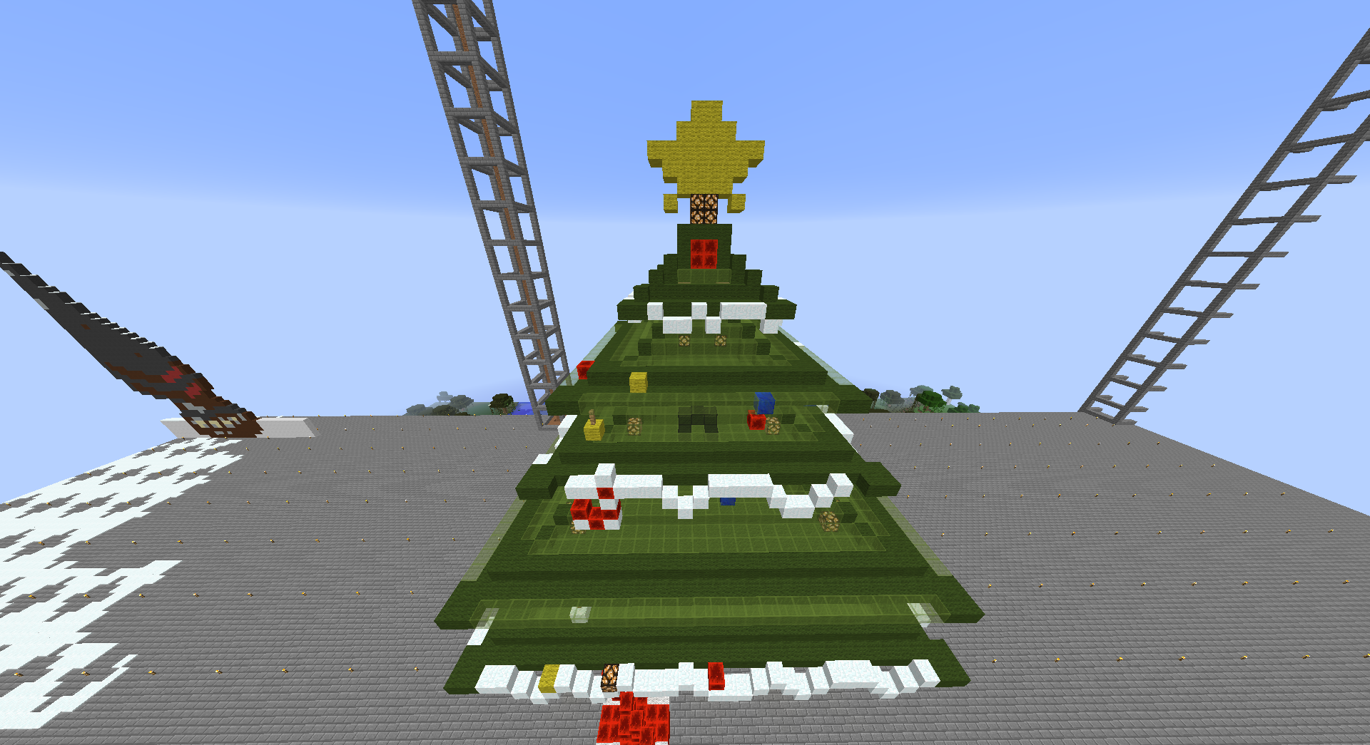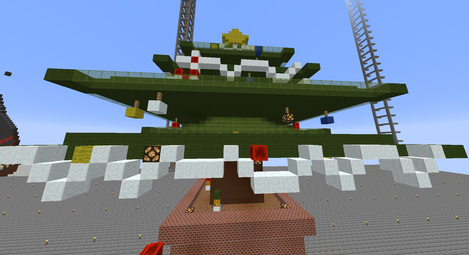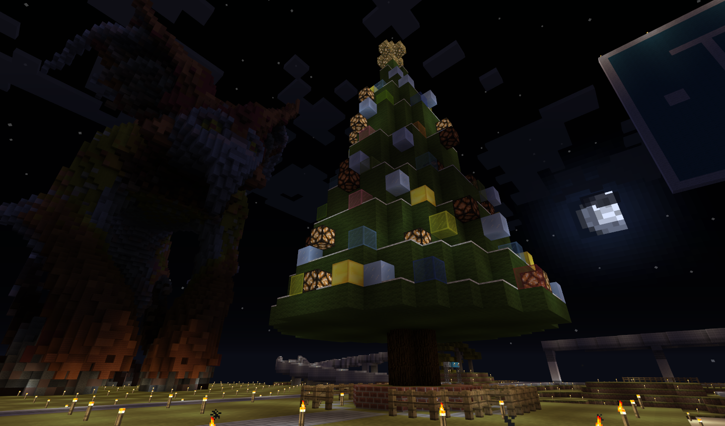 クリスマスと言えばケーキ! ということでツリーの飾りを8割がたケーキにしてみました。 工夫したところはベンチの横にリア充専用TNTが置いてあるところですw 場所は西3Wよりx−5408y65z-492です。 (もう二度とケーキは作りたくないです・・・) |