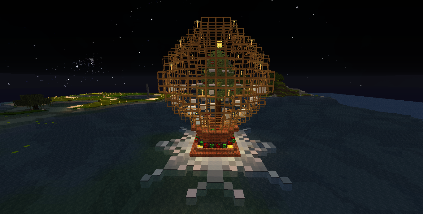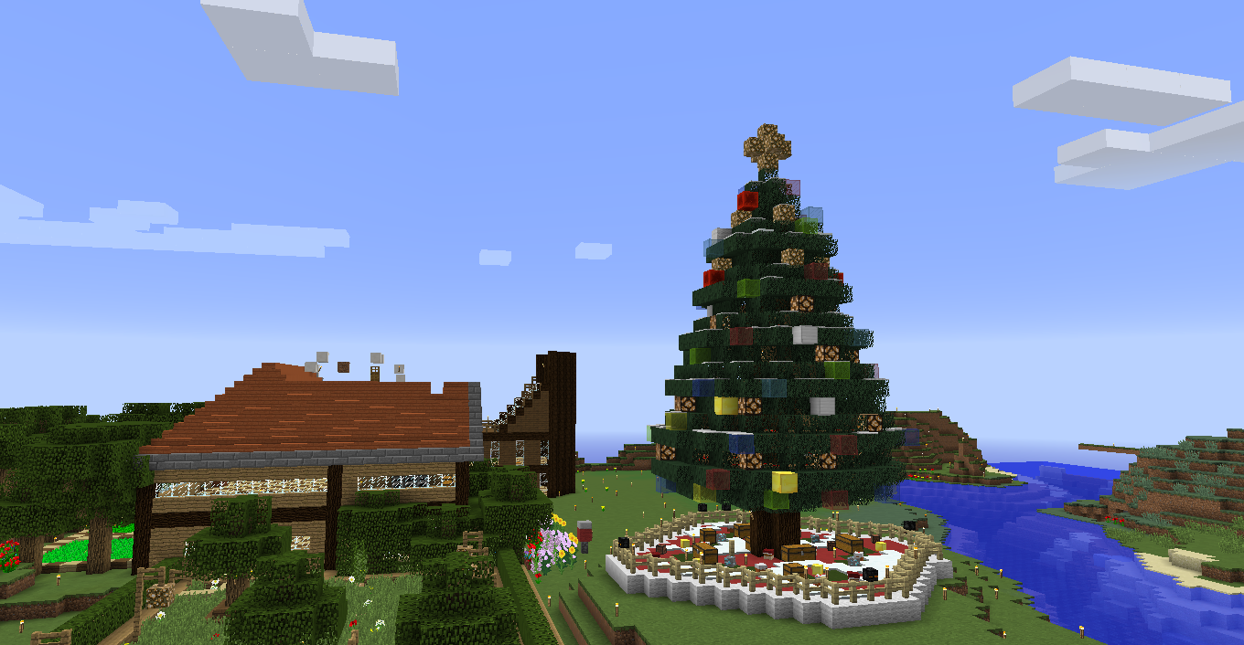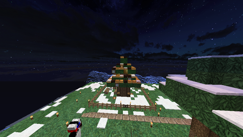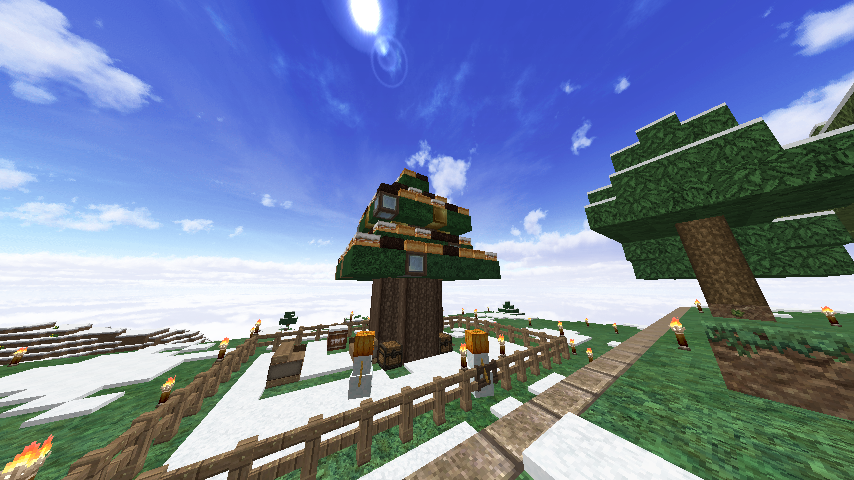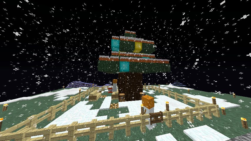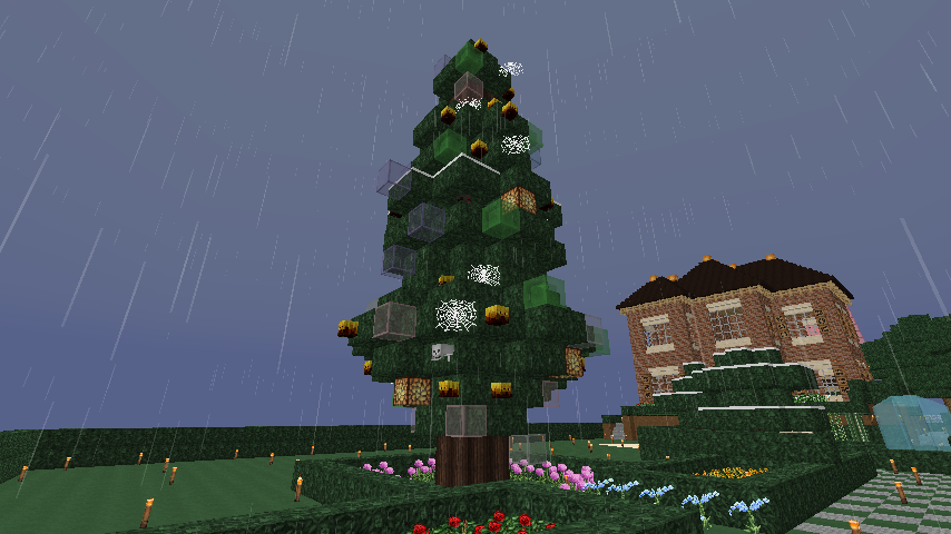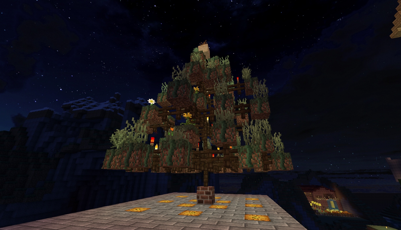 場所:(x-4144.y64.z743付近) 工夫した点:氷塊ブロックでツリーを巻いたり、キノコブロックなどの面白いブロックを使用しました。 一言:大垣村の中心部に作りました。興味がある人は見に来てみては? |