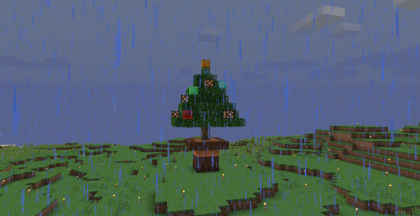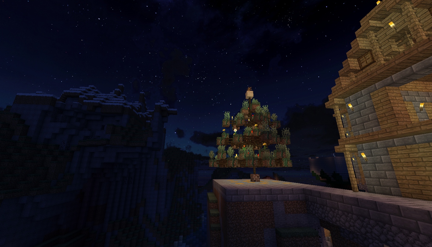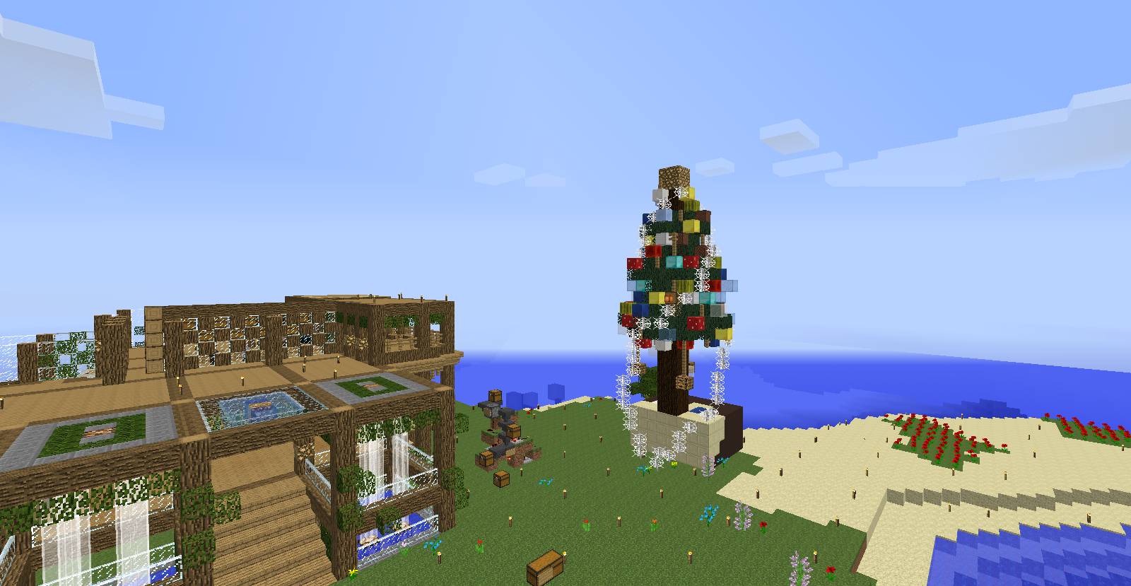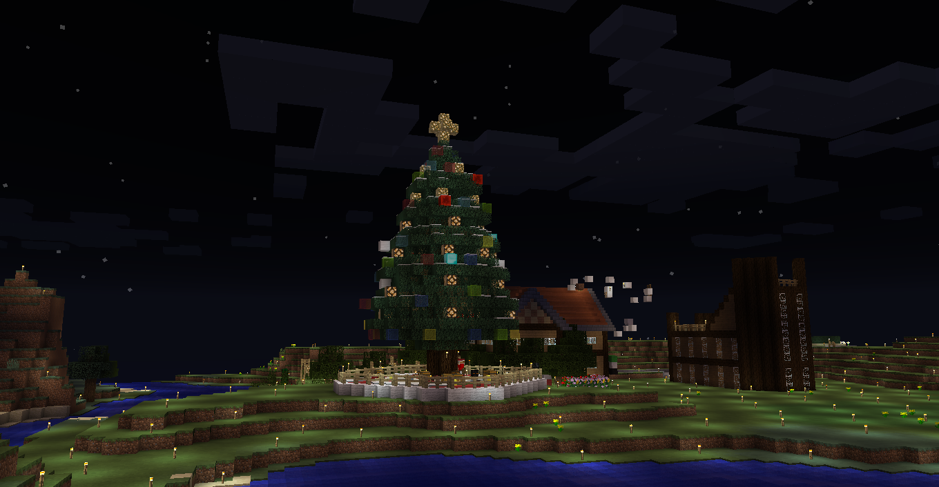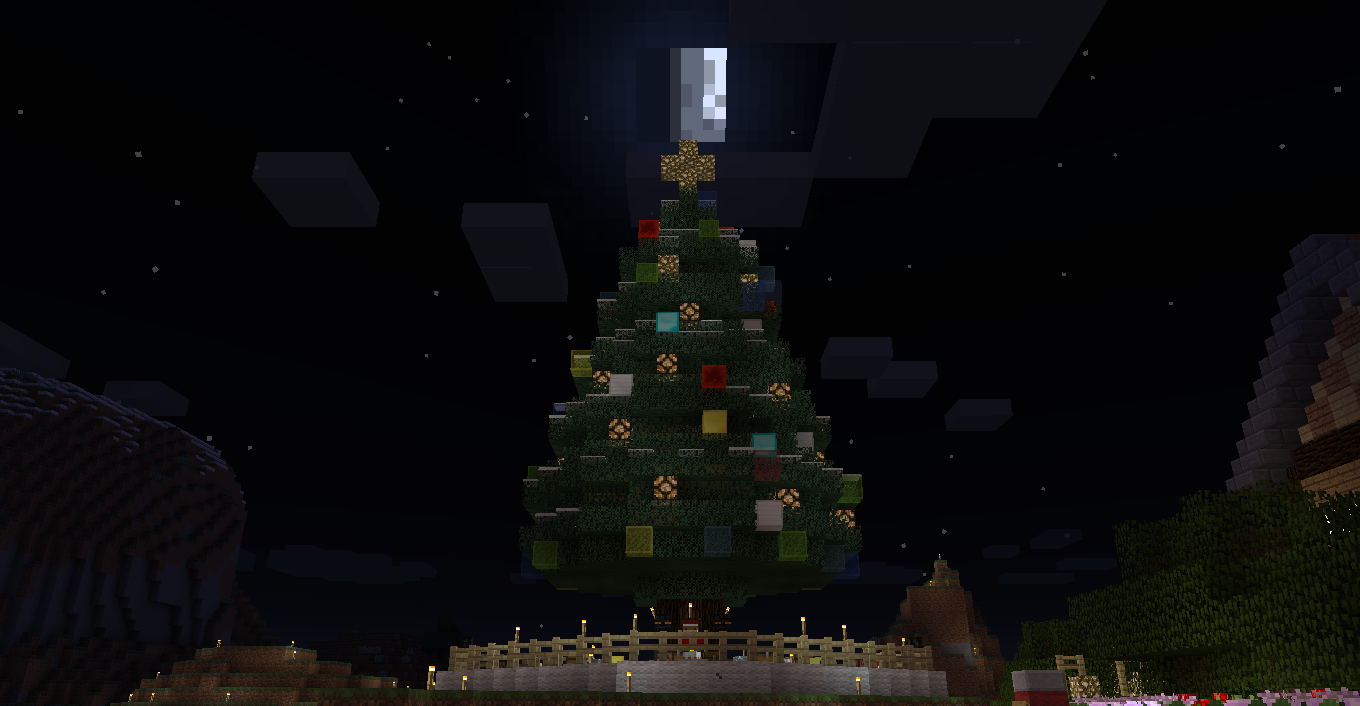 場所:(x-4144.y64.z743付近) 工夫した点:氷塊ブロックでツリーを巻いたり、キノコブロックなどの面白いブロックを使用しました。 一言:大垣村の中心部に作りました。興味がある人は見に来てみては? |
