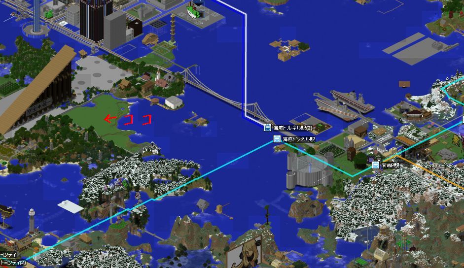 投票会場についてのお知らせです ホームワールドx-667 y66 z+2001付近です 南WP1を出て西へ行くと海上都市へ続く橋があります その手前の南側の海をボートで来るのが速いかと思います |