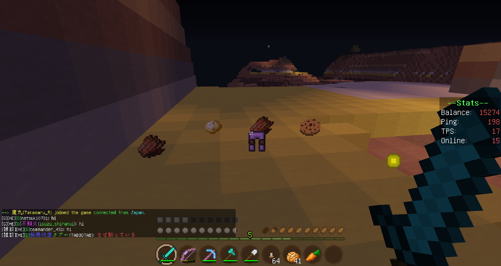 気づいたら畑にエンダー先輩が居ました。 エンドラのかたきですかね?w その後、エンダーさんはちょっと畑を荒らして出て行きました^^; |