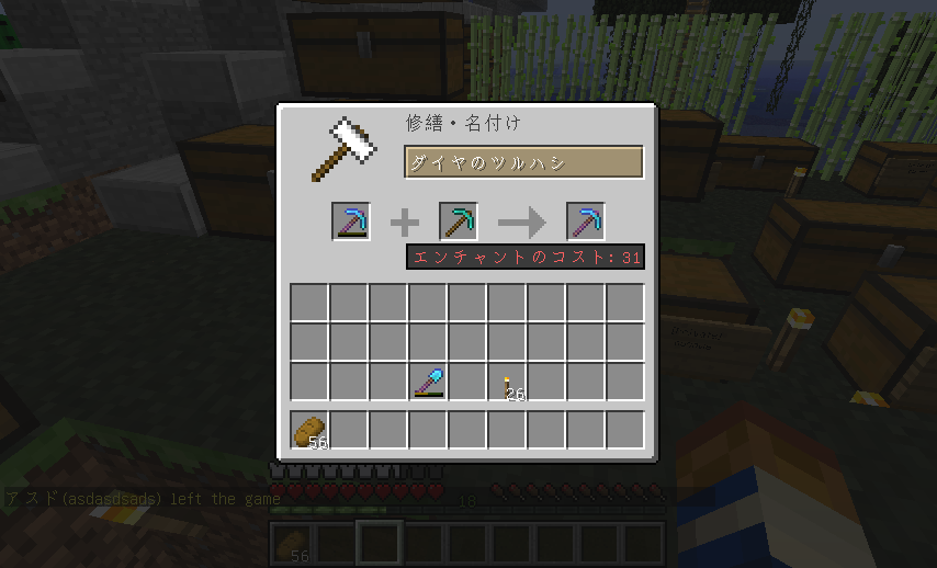 試しに名前を変更して金床を使用しようとしてみてください(画像の名前は適当です)