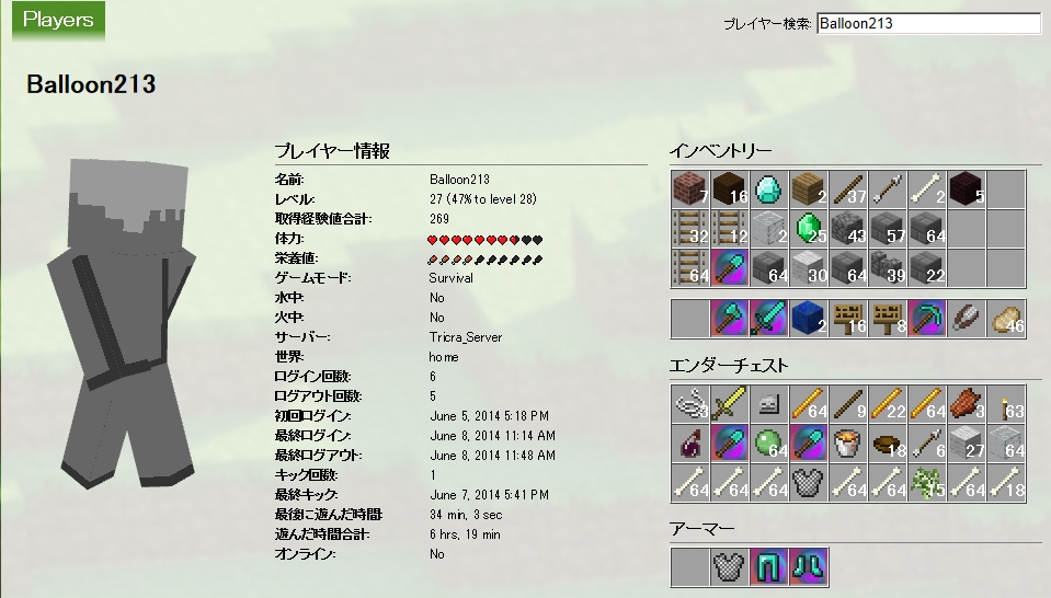 使用後は必ずアイテム格納チェストを空にするのと エンチャント施設の格納をして下さい
