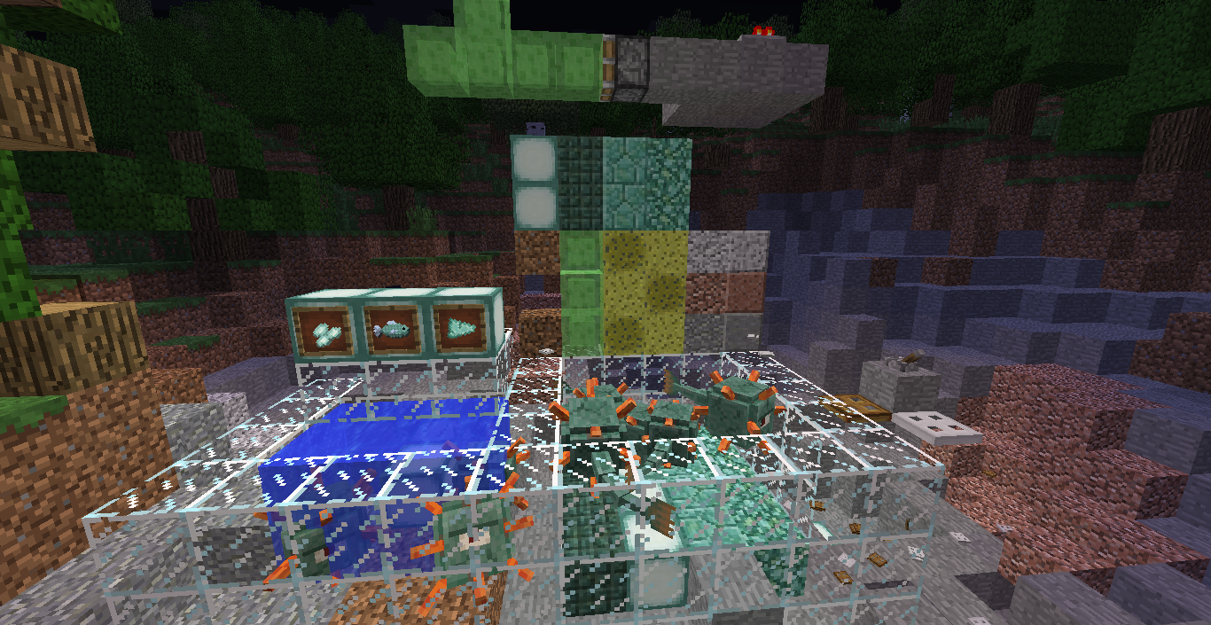 同施設は鎧を着ていないmob相手なら素手でワンパン仕様 ドロップアイテムは叩き場左のチェストに自動格納されます