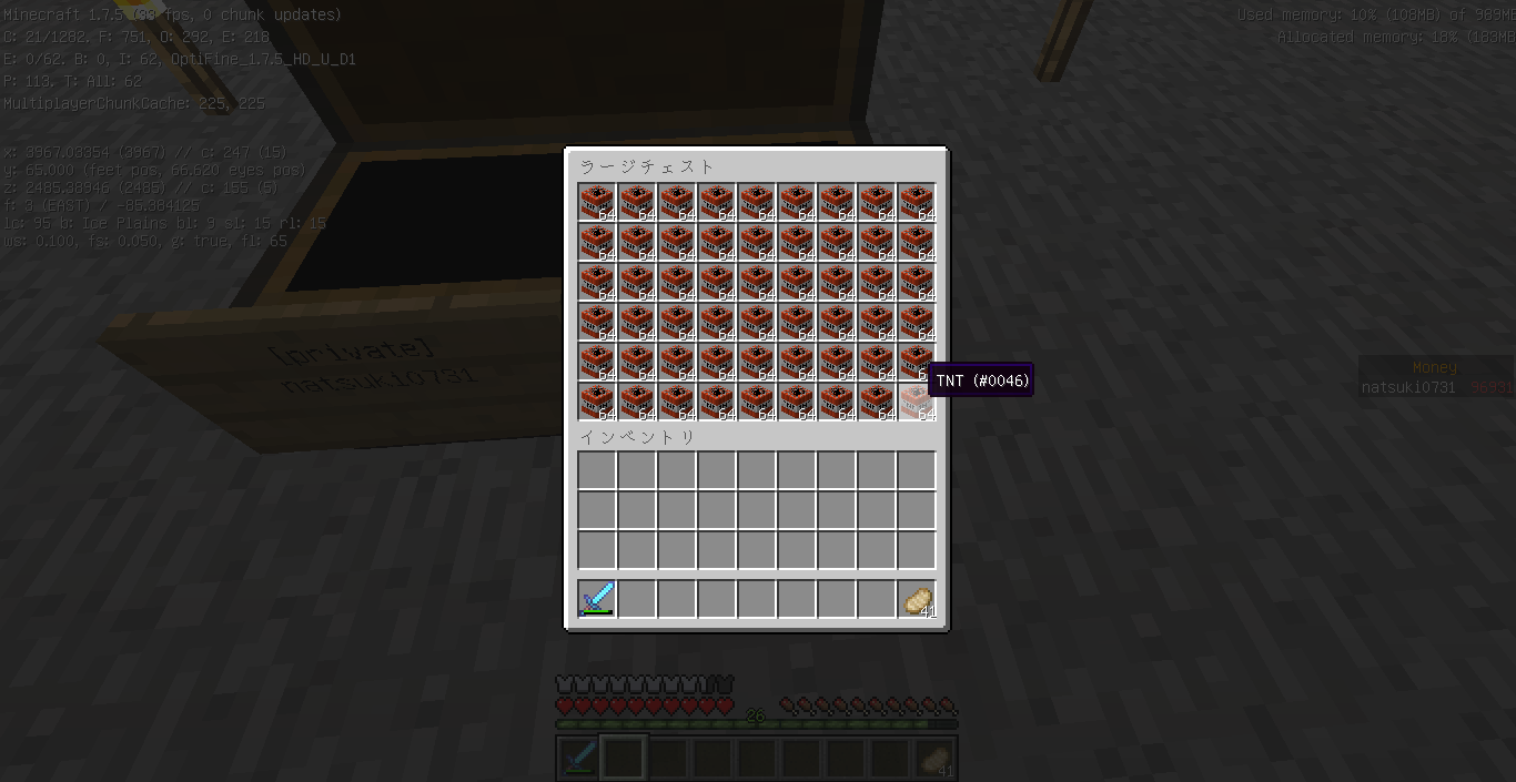 場所等は説明が面倒臭いので座標(X152,Y64,Z-992)を目指してくださいませ