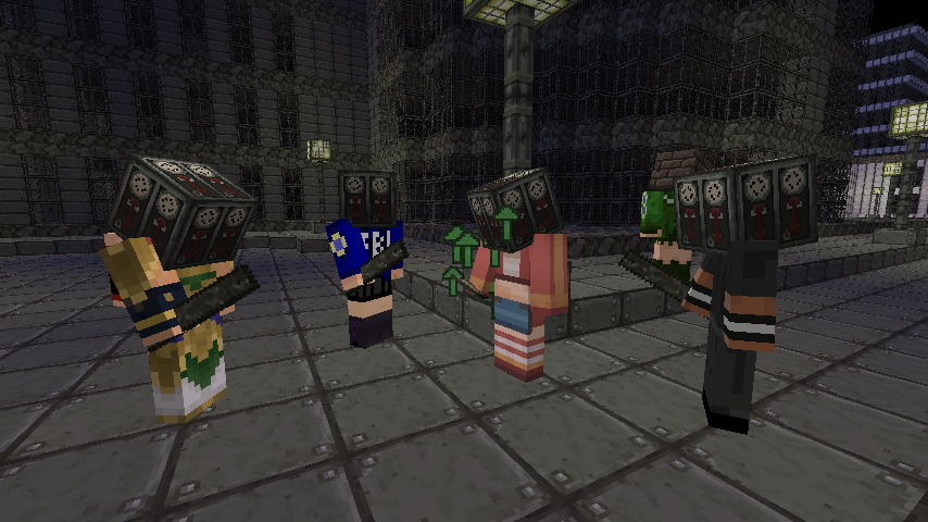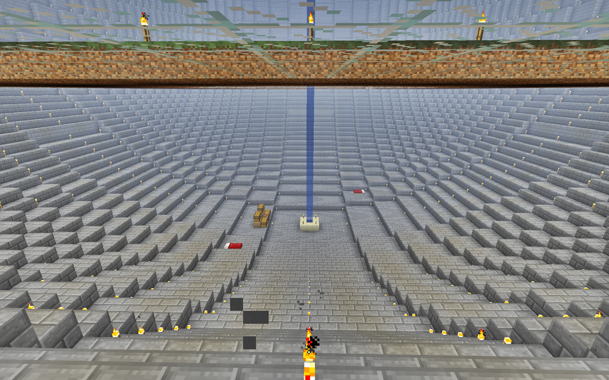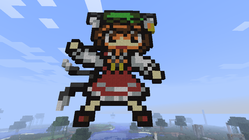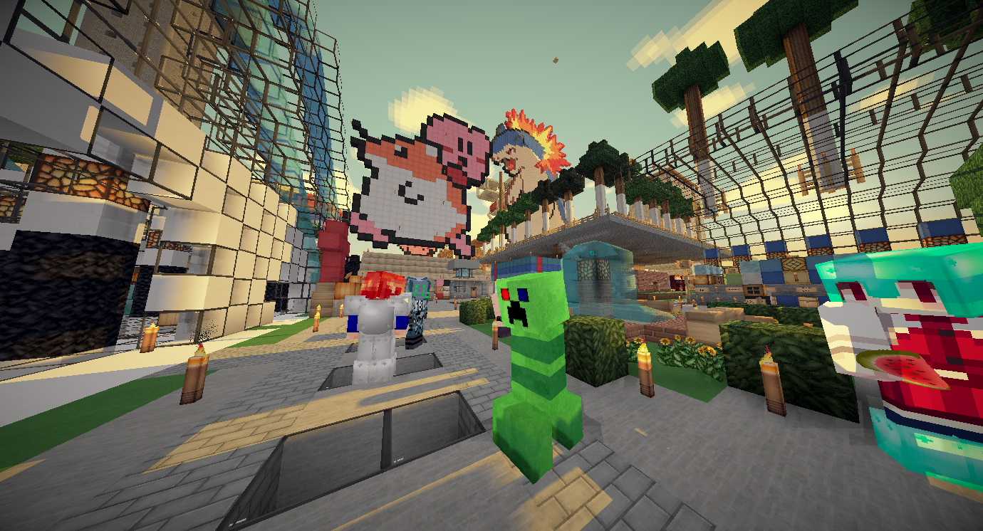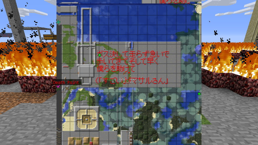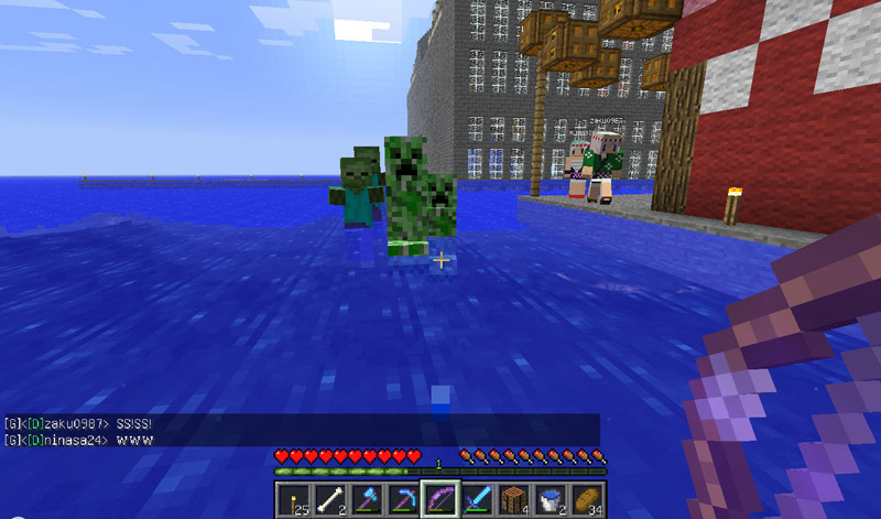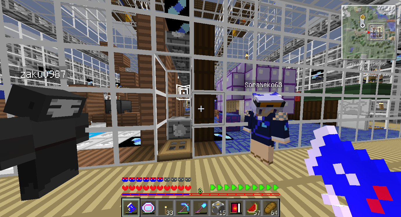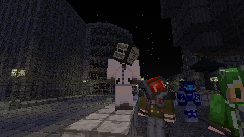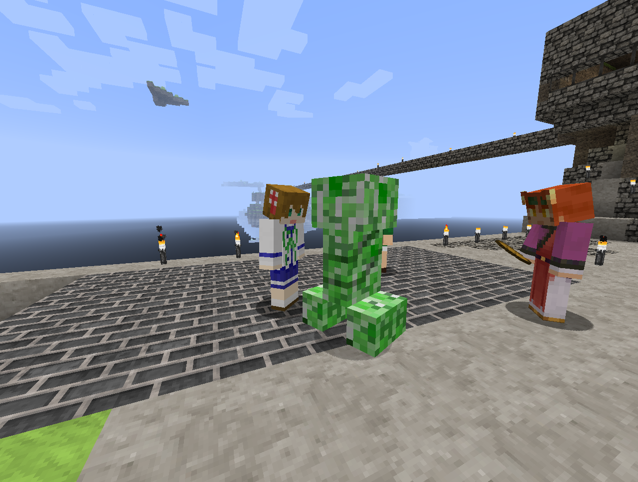 同じく12’7/14深夜から15日未明にかけて行われたおにごっこ(どろけい)の集合写真です。 試験的実施ということで兼ねてよりイベント用に用意されていたワールドの公開。 それと同時に観客を含む20人余りでおにごっこが開催された。 ルールは鬼役が赤羊毛を被り逃走中のプレイヤーを金剣で叩くというもの。 金剣でたたかれたプレイヤーは当然のように燃え上がりアウトになる。 アウトになったプレイヤーは鬼となり、さらに逃走中のプレイヤーを探すことになる。 これを繰り返し、15分経過、もしくは逃走者がいなくなるまで行われる。 今回は午前0時46分より1時1分までの決行。 試験運営ということで緩やかに試合は立ち上がり鬼側が優勢に運ぶも、 逃走者は3名が見事逃げ切り、逃走者側の勝利で終えた。 |