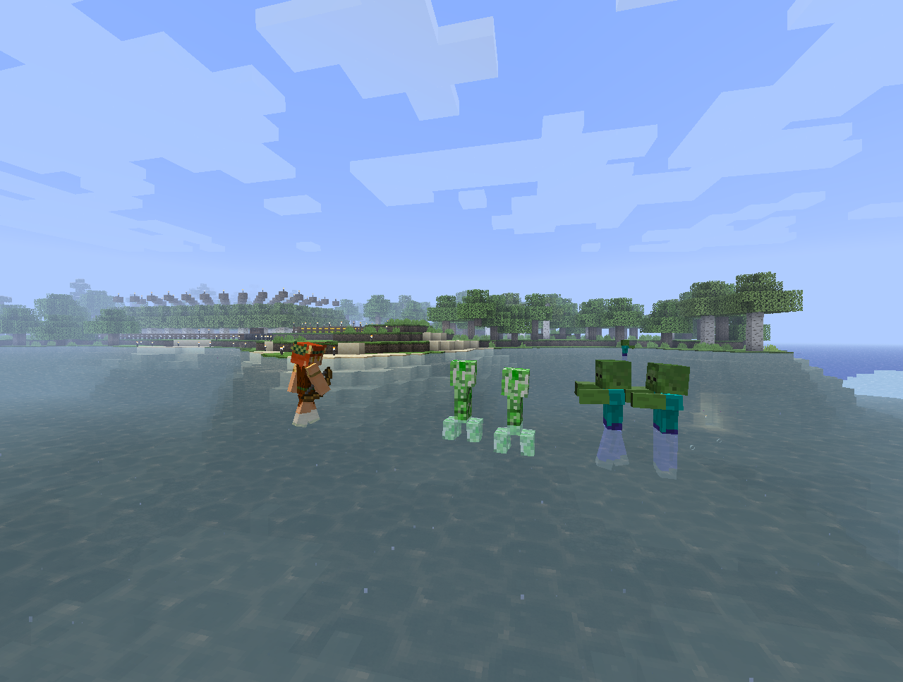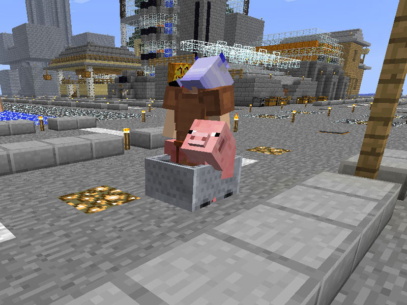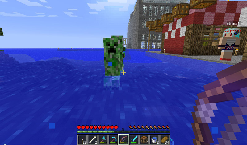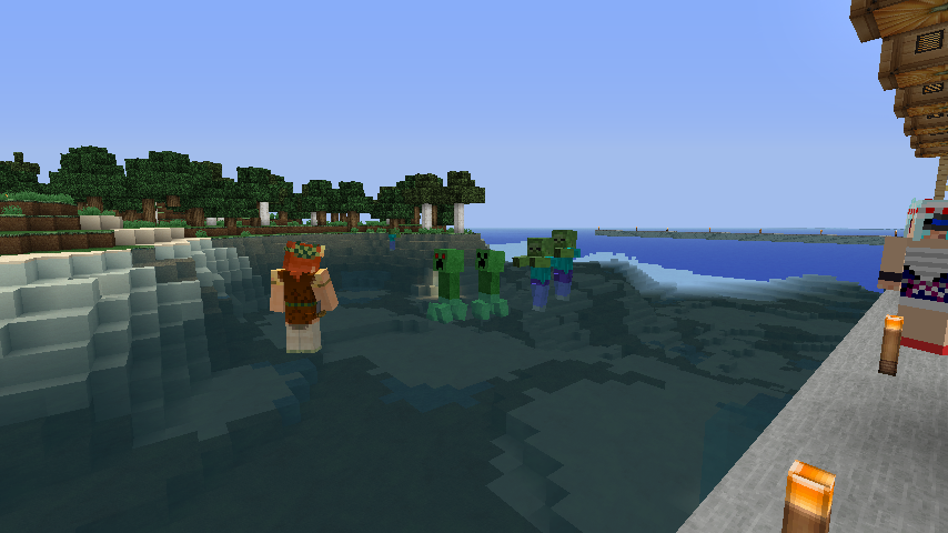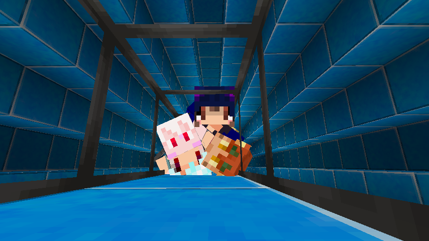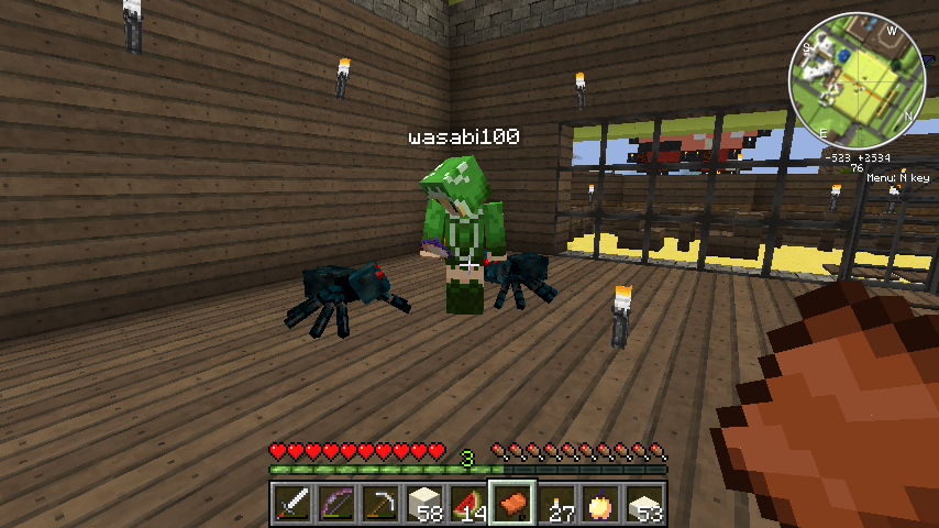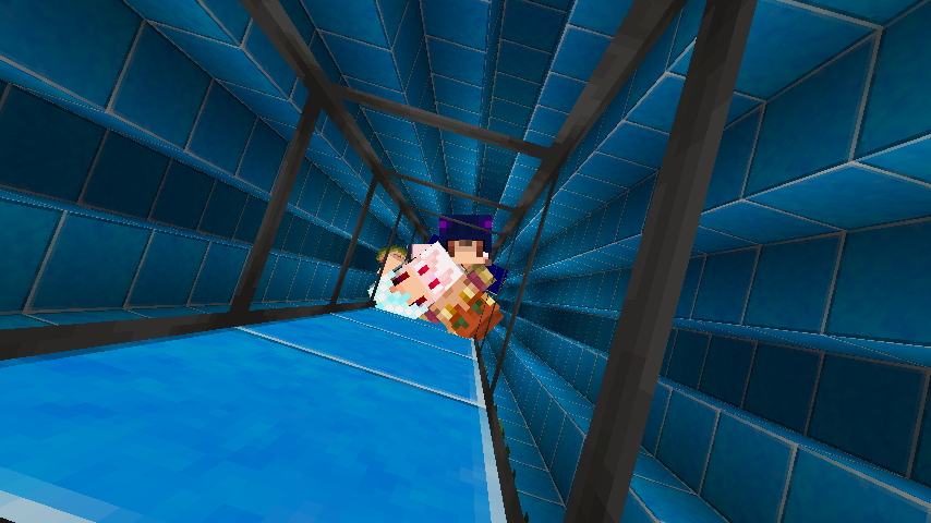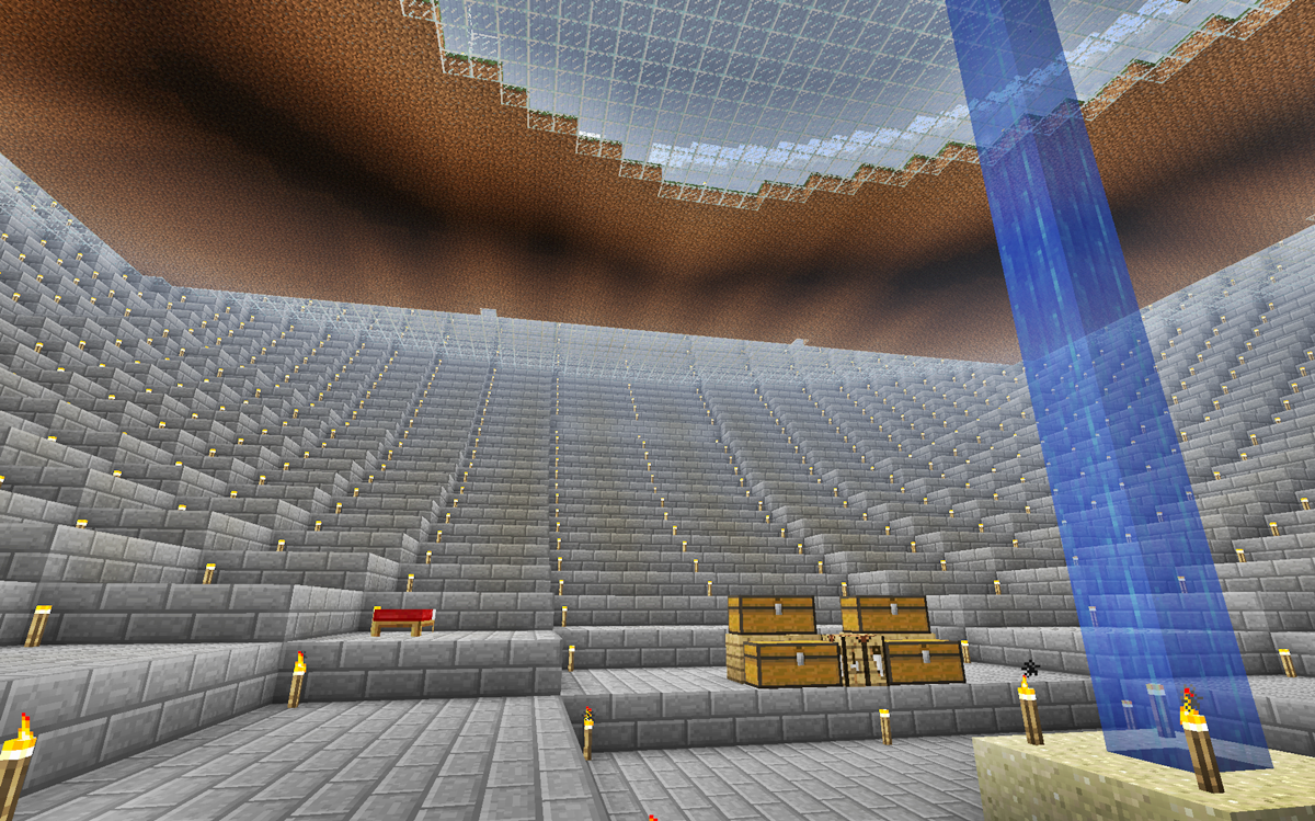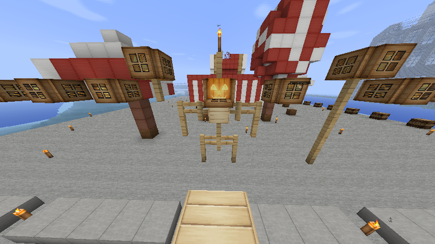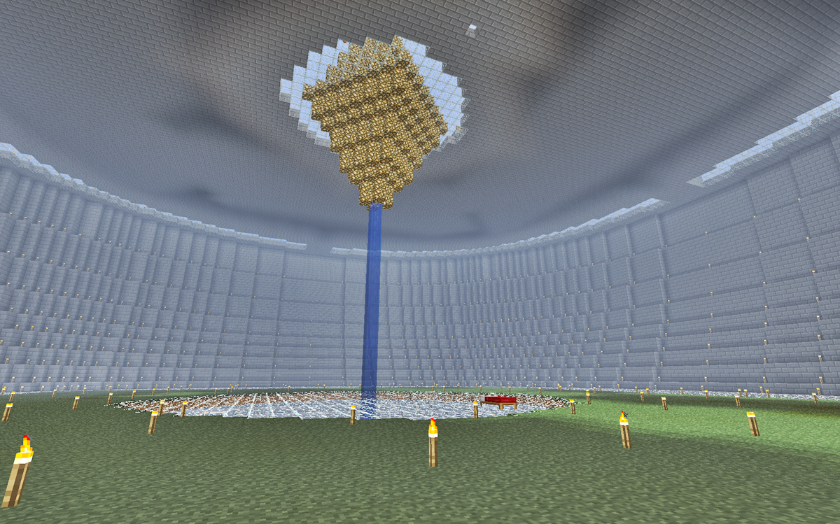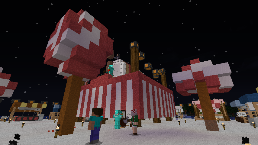 同じく12’7/14深夜から15日未明にかけて行われたおにごっこ(どろけい)の集合写真です。 試験的実施ということで兼ねてよりイベント用に用意されていたワールドの公開。 それと同時に観客を含む20人余りでおにごっこが開催された。 ルールは鬼役が赤羊毛を被り逃走中のプレイヤーを金剣で叩くというもの。 金剣でたたかれたプレイヤーは当然のように燃え上がりアウトになる。 アウトになったプレイヤーは鬼となり、さらに逃走中のプレイヤーを探すことになる。 これを繰り返し、15分経過、もしくは逃走者がいなくなるまで行われる。 今回は午前0時46分より1時1分までの決行。 試験運営ということで緩やかに試合は立ち上がり鬼側が優勢に運ぶも、 逃走者は3名が見事逃げ切り、逃走者側の勝利で終えた。 |