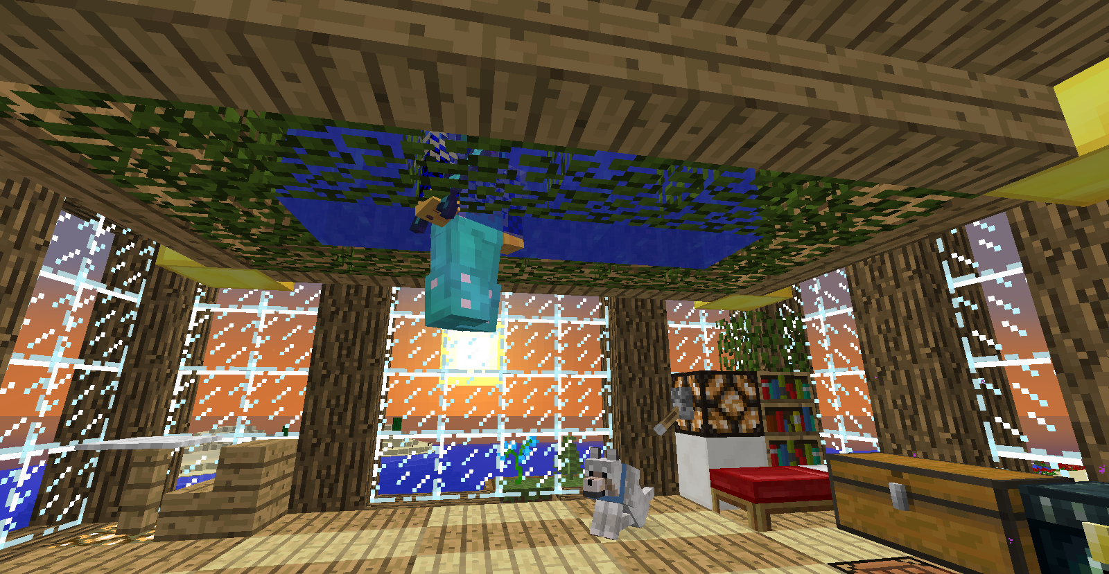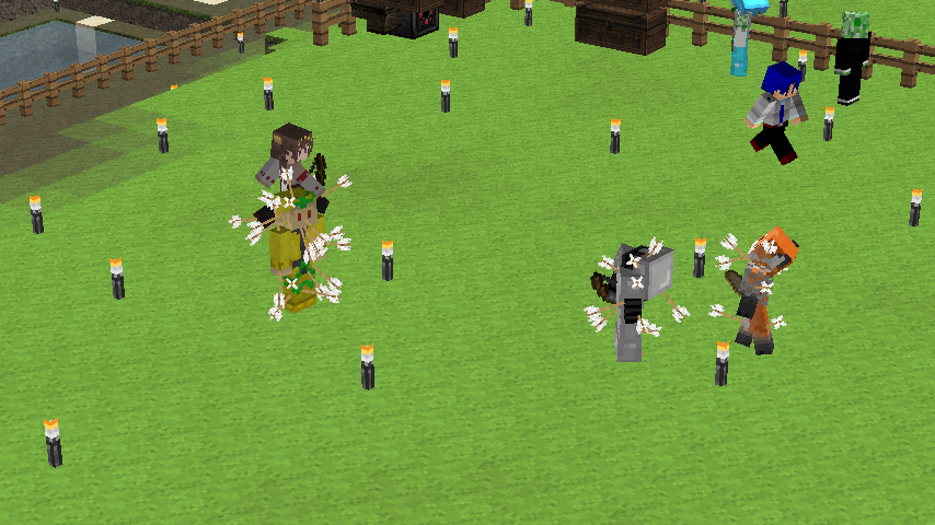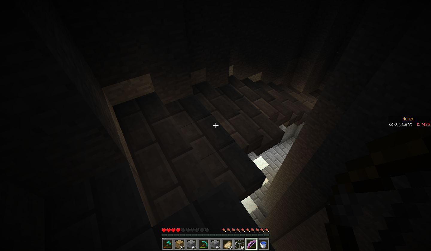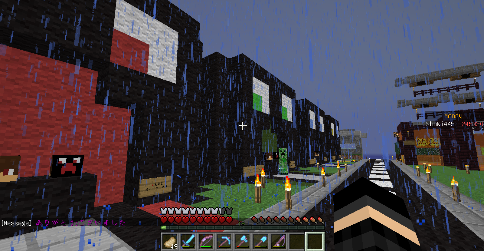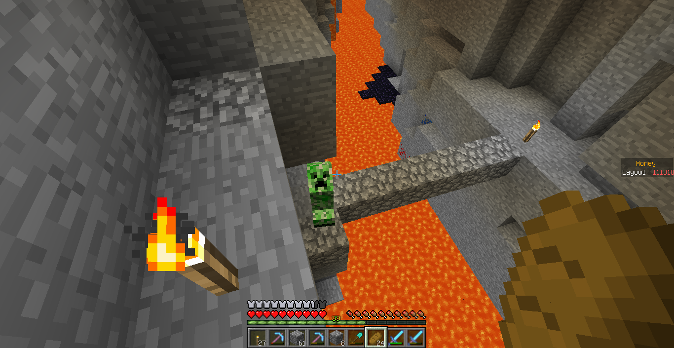 改装中の塔内での出来事。 私はいつもどおり作業の続きをしていると、足を滑らせ落下死しました。 ここまではいつもどおりで問題は無かったのです。 しかし、いざ戻ってみると金フル装備の(私の)ダイヤ剣持ちの助さんに襲われました。 偶々、近くに穴があったのでそこに突き落としましたがハートを8割持っていかれましたね。 そんで恐る恐る降りてみますと(画像1) 助さんは昇天していて助かりました!(画像2) そんでキッチリアイテムを回収後作業に戻りました。 ちなみにこのとき私はネタ的な意味合いで金ヘルメットしかつけてませんでした。 そして、作業中小指を攣り落下死しました。平常運転です。 しかし、問題はこの後でした。 戻っていくと道中助さんの射撃で目を潰されました。 念のため用意していたワンちゃんのおかげで助を倒して、暗闇状態のまま進むと、アイテムが見えましたね!やりましたわ! その0.5秒後に巨匠が見えるまではそう思いました。 死にました。 ダイヤ36個、木材20個、焼き豚60個、先程のエンチャダイヤ剣、建築資材、殆どなくなりました。(画像3) というより建築場所にコイツ沸く(画像4)レベルですからもっと重装備で行くべきでした・・・。 皆さんも建設中でも警戒を怠らないでください。 私は始めて自分の作った村の怖さを知りました。 |