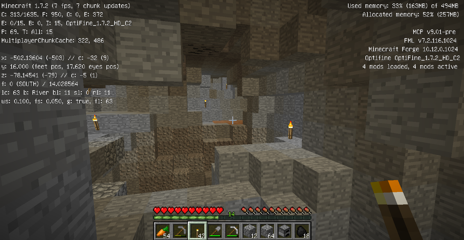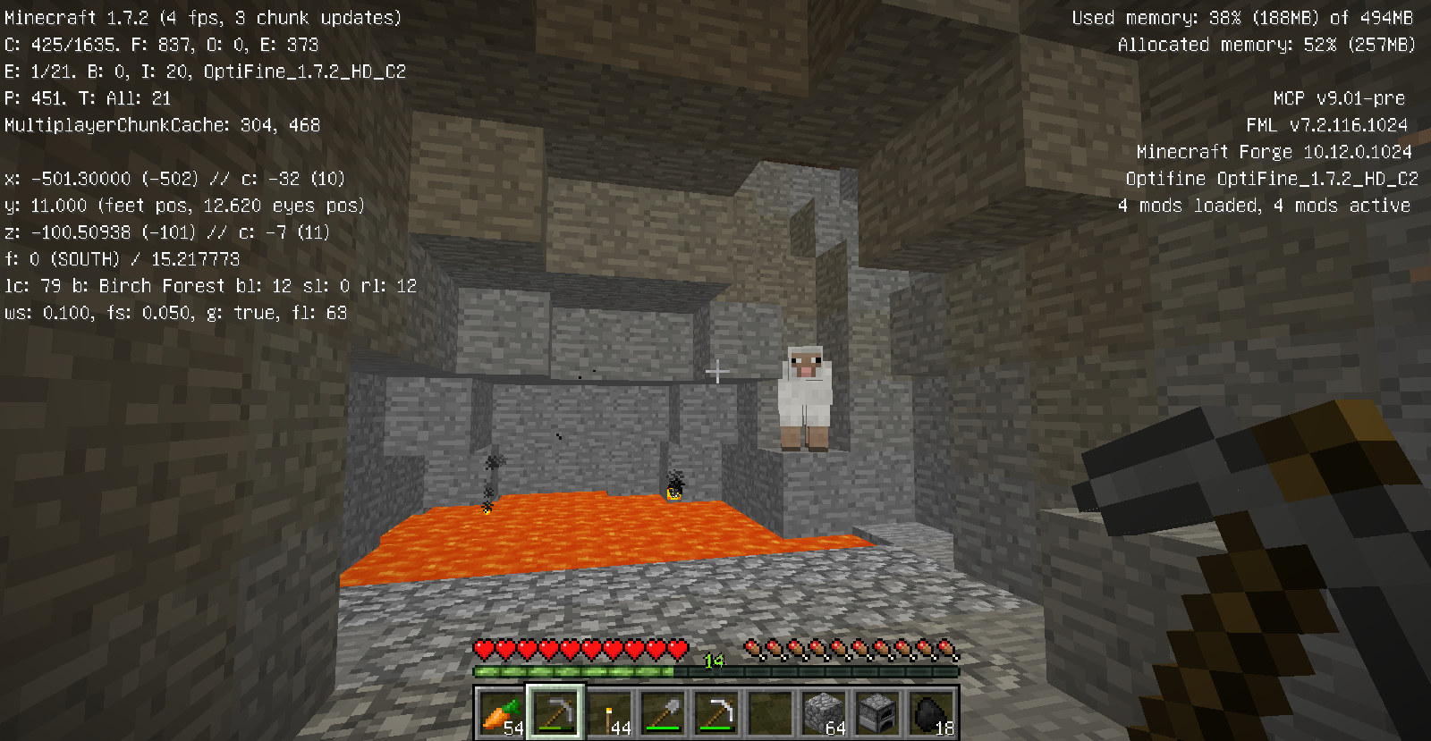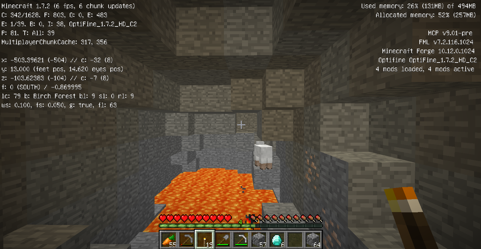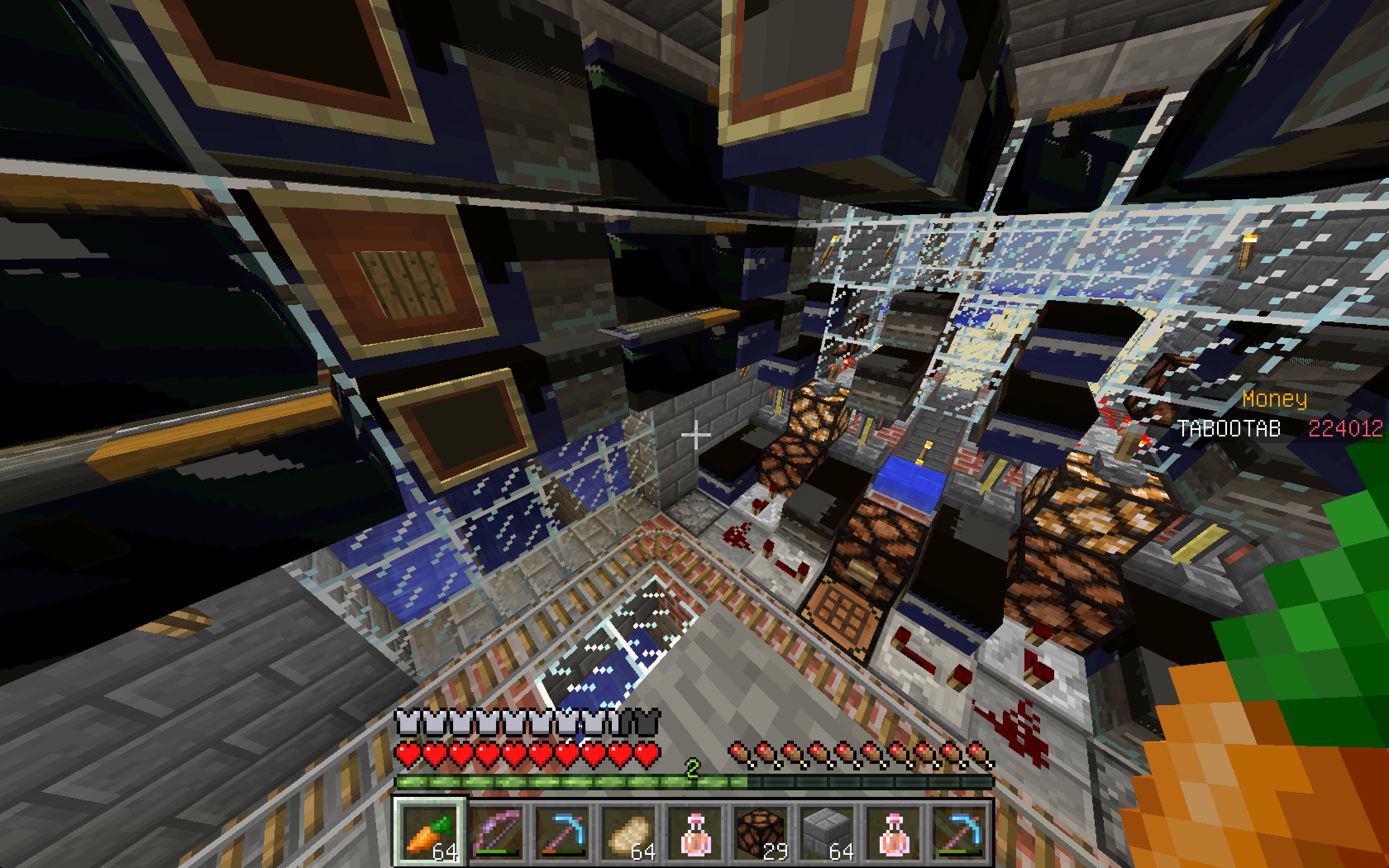 改装中の塔内での出来事。 私はいつもどおり作業の続きをしていると、足を滑らせ落下死しました。 ここまではいつもどおりで問題は無かったのです。 しかし、いざ戻ってみると金フル装備の(私の)ダイヤ剣持ちの助さんに襲われました。 偶々、近くに穴があったのでそこに突き落としましたがハートを8割持っていかれましたね。 そんで恐る恐る降りてみますと(画像1) 助さんは昇天していて助かりました!(画像2) そんでキッチリアイテムを回収後作業に戻りました。 ちなみにこのとき私はネタ的な意味合いで金ヘルメットしかつけてませんでした。 そして、作業中小指を攣り落下死しました。平常運転です。 しかし、問題はこの後でした。 戻っていくと道中助さんの射撃で目を潰されました。 念のため用意していたワンちゃんのおかげで助を倒して、暗闇状態のまま進むと、アイテムが見えましたね!やりましたわ! その0.5秒後に巨匠が見えるまではそう思いました。 死にました。 ダイヤ36個、木材20個、焼き豚60個、先程のエンチャダイヤ剣、建築資材、殆どなくなりました。(画像3) というより建築場所にコイツ沸く(画像4)レベルですからもっと重装備で行くべきでした・・・。 皆さんも建設中でも警戒を怠らないでください。 私は始めて自分の作った村の怖さを知りました。 |