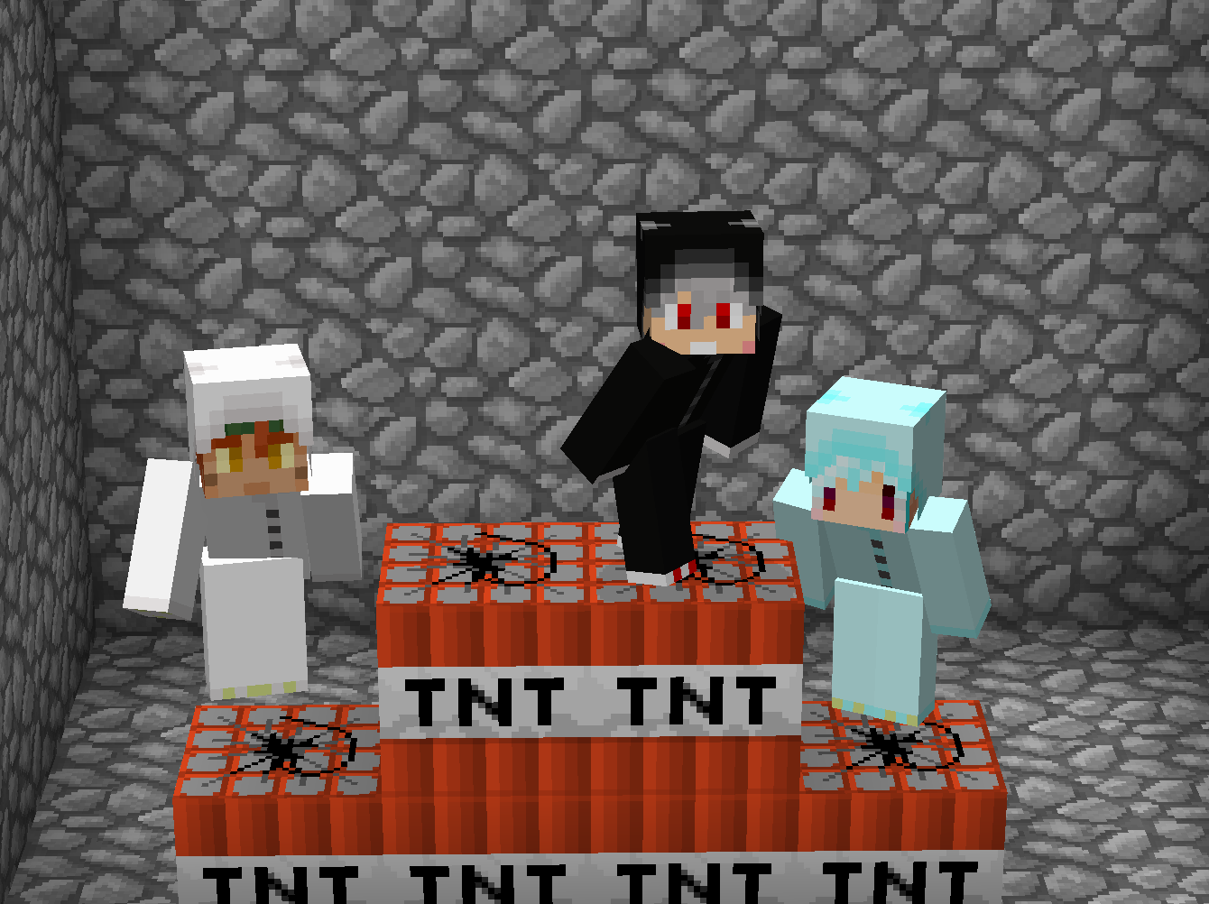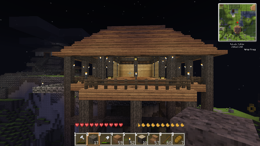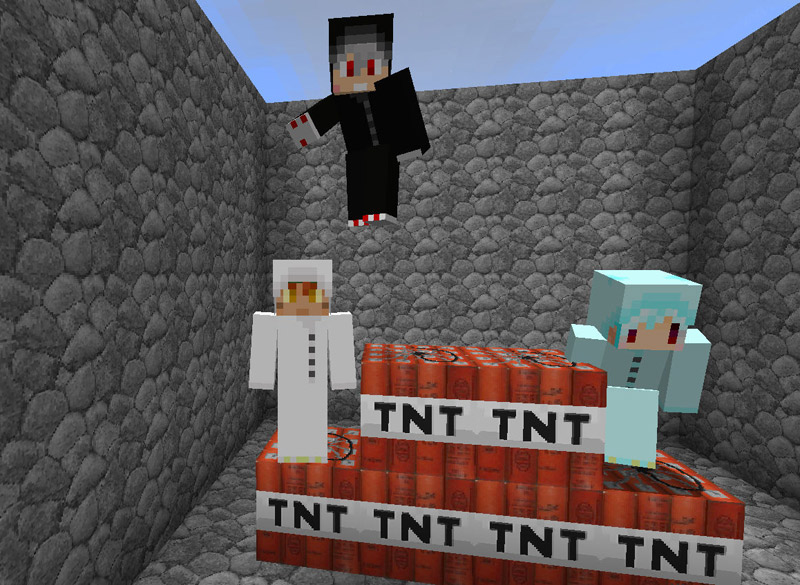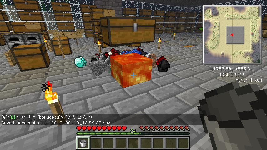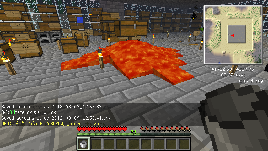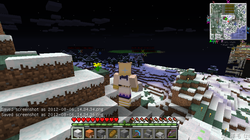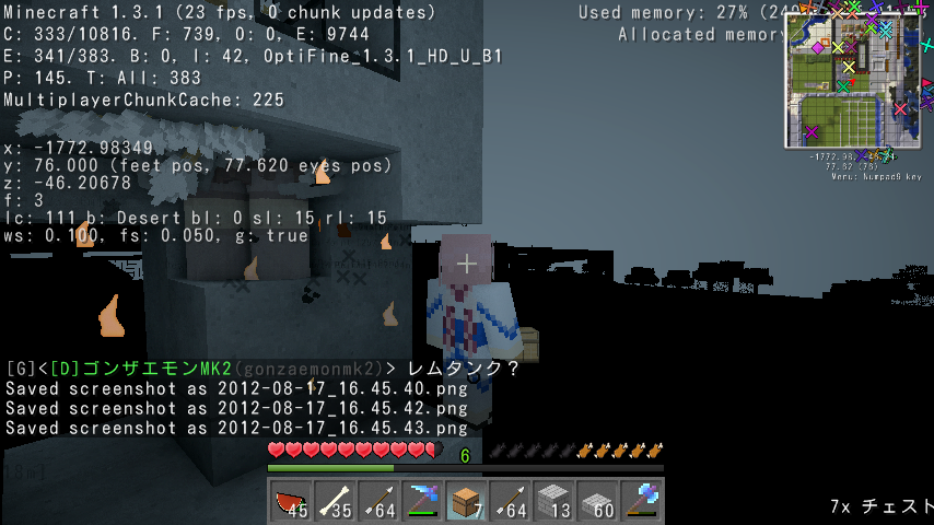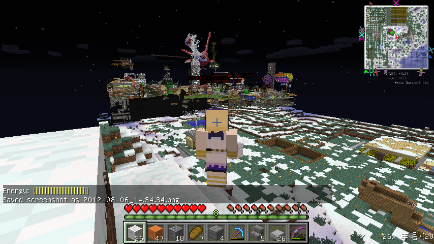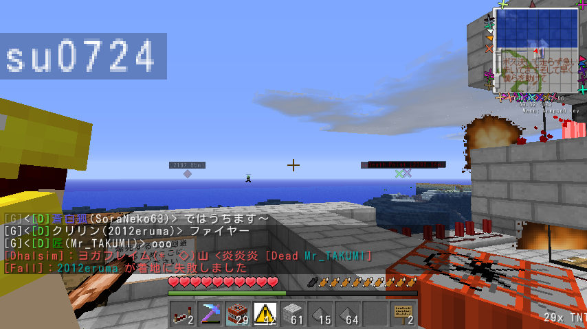 T氏と一緒にTNTで遊んだときのSSです。小さな人影になっているのがT氏です。この時の使用TNTは1スタックと9個です。発射直であそこまで飛んでいきます。