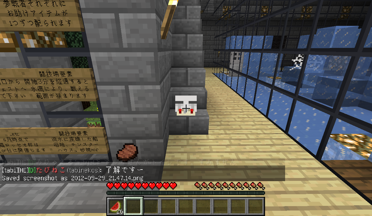 クラトコ村のWP密集地帯の1番端っこのWPからいける身近な闘技場。最初は要塞がテーマだったがどうしてこうなったw。暇な人はぜひ来てください。その周りに村を建設する予定ですので、そこの協力してくれる人がいればお願いします。(説明べたでスイマセン。)